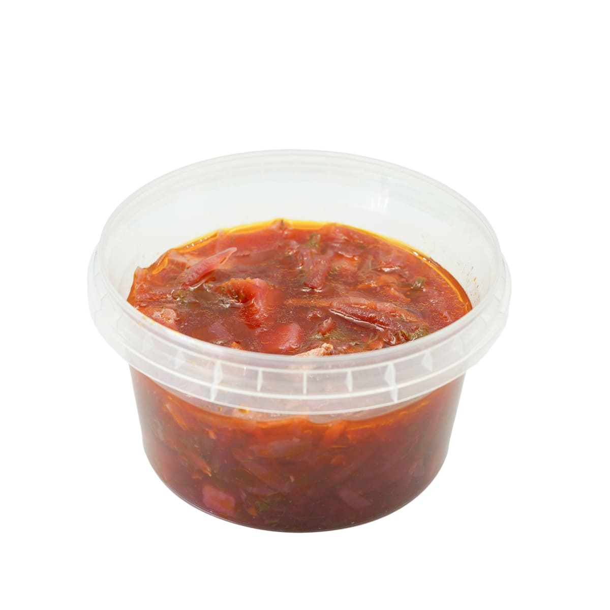 За пъв път охитвам борщ - много ми хареса, редовно ще си поръчвам занапред. Моля само да добавите към описанието на ингредиентите, че съдържа също и подправките дафинов лист и зелен копър, имаше ги в получената от мен супа и те придават необичаен вкус.