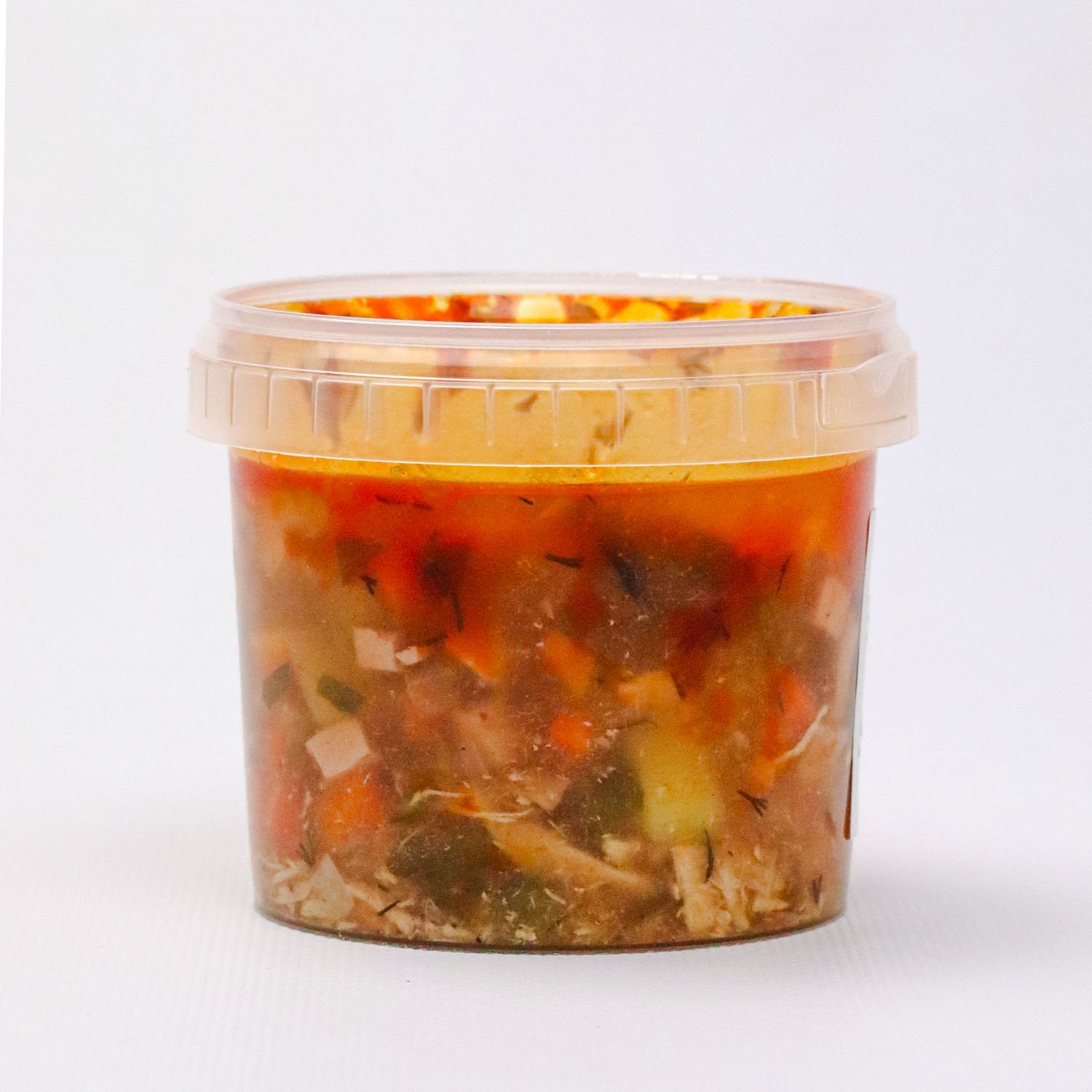 Свинско месо, пилешко месо, картофи, моркови, лук, шунка, колбас варен, доматено пюре, маслини, червен пипер, черен пипер, сол, магданоз, копър.