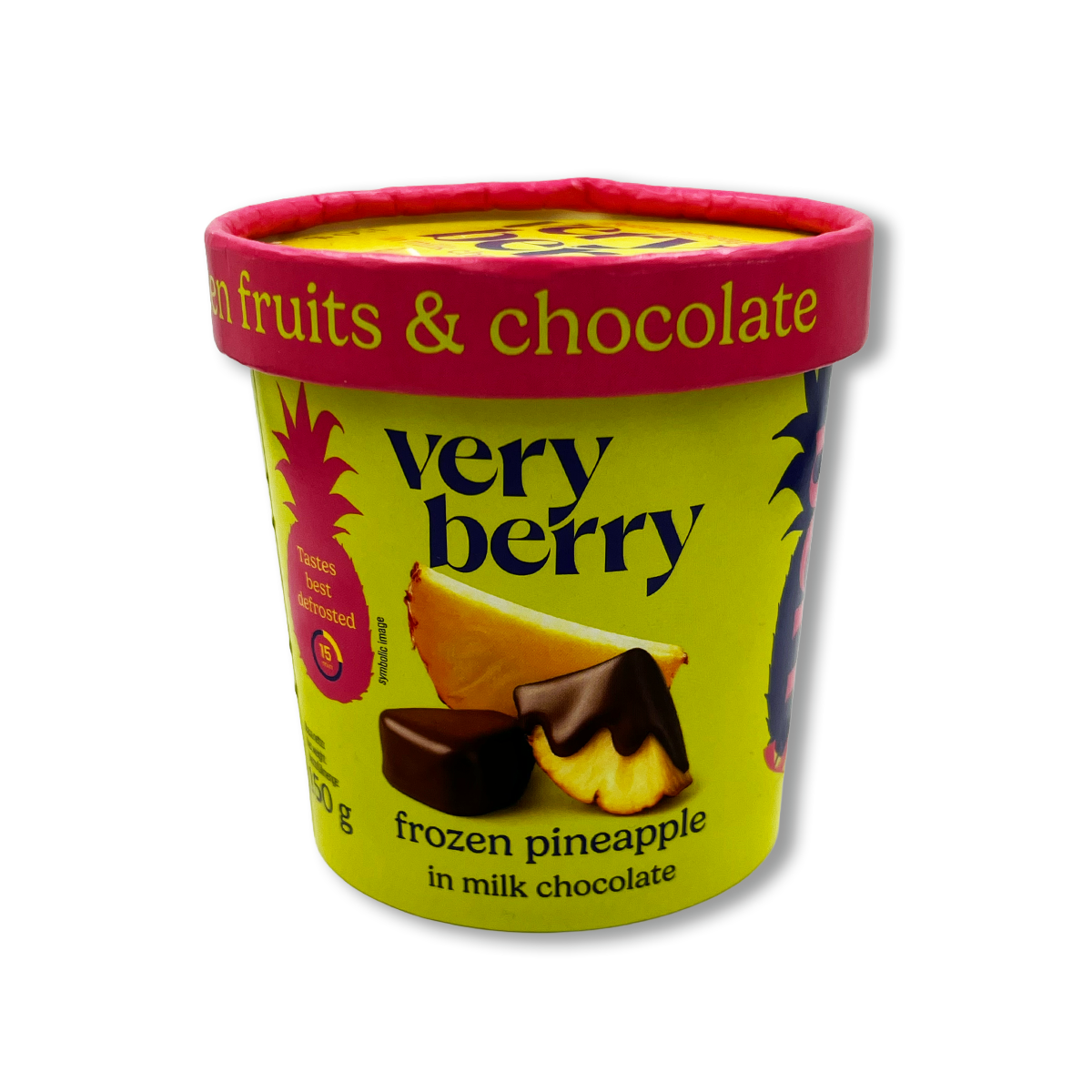 ананас 60 %, млечен шоколад 40 % (захар, какаово масло, МЛЯКО на прах, какаова маса, МЛЕЧНА СУРОВАТКА на прах (от МЛЯКО), МЛЯКО мазнина, емулгатор: СОЕВ лецитин, натурален ванилов ароматизант). Млечен шоколад: минимум 33 % какаови сухи вещества. Може да съдържа следи от: ФЪСТЪЦИ, ЯДКИ, ГЛУТЕН.