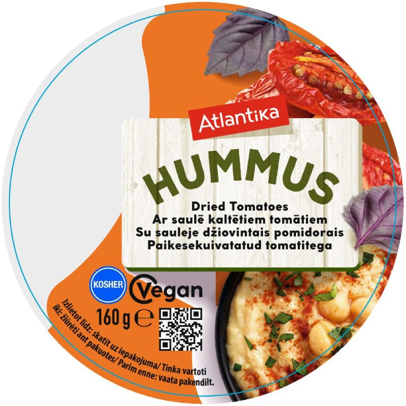 нахут 63%, рапично олио (R в номера на партидата) или слънчогледово олио (S в номера на партидата), вода, СУСАМова паста, царевично нишесте, сушени домати, сол, регулатор на киселинността: лимонена киселина (E330), гранули от чесън, регулатор на киселинността: млечна киселина (E270), консервант: калиев сорбат (E202), консервант: натриев бензоат (E211), смлян бял пипер.Алергени: СУСАМ.