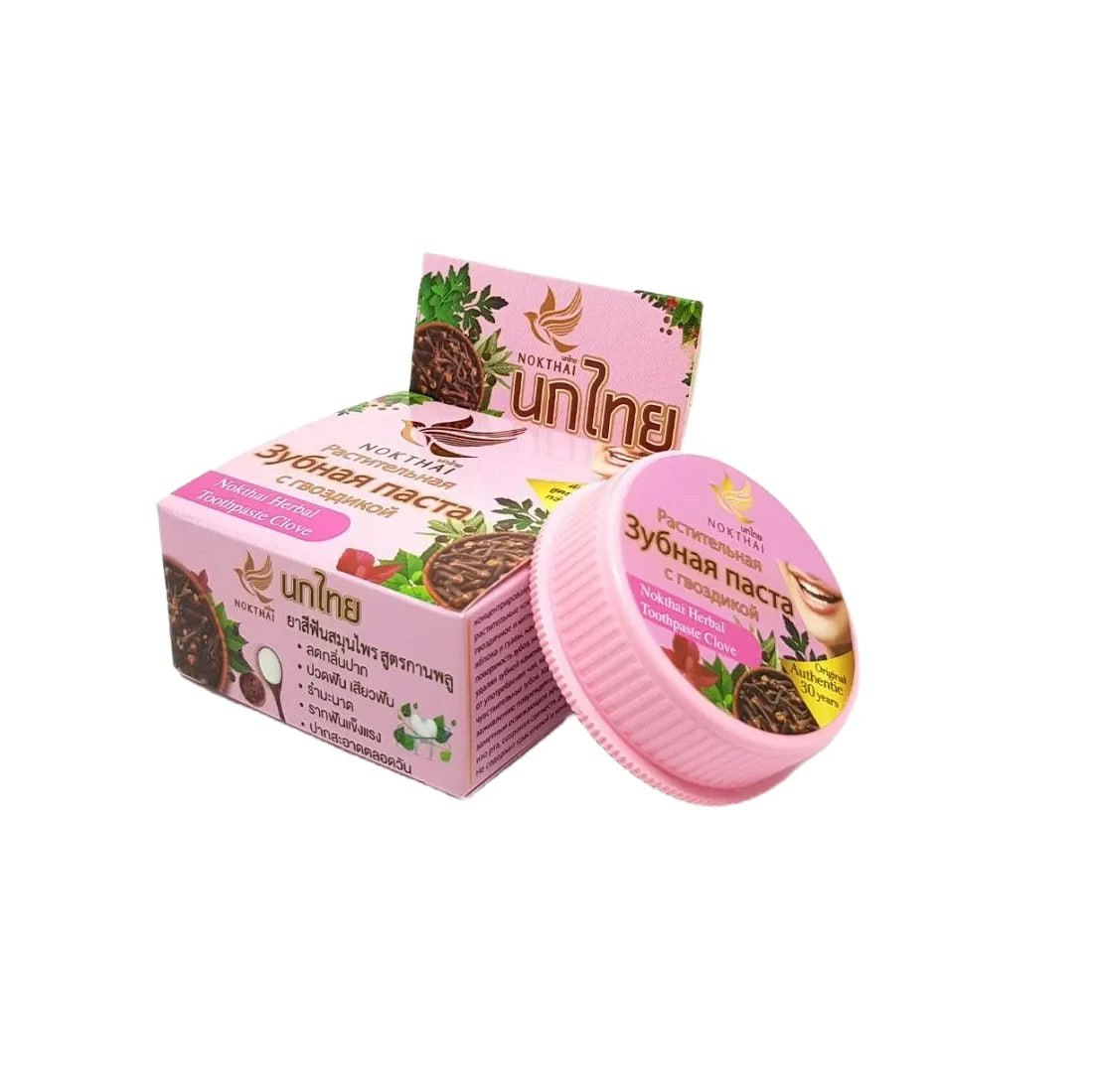 BG NOKTHAI концентрирана растителна избелваща паста за зъби с екстракт от карамфил, 25 g, с изразен избелващ ефект. Карамфилът е мощен естествен антисептик и унищожава патогенните бактерии в устната кухина. Пастата има троен избелващ ефект.