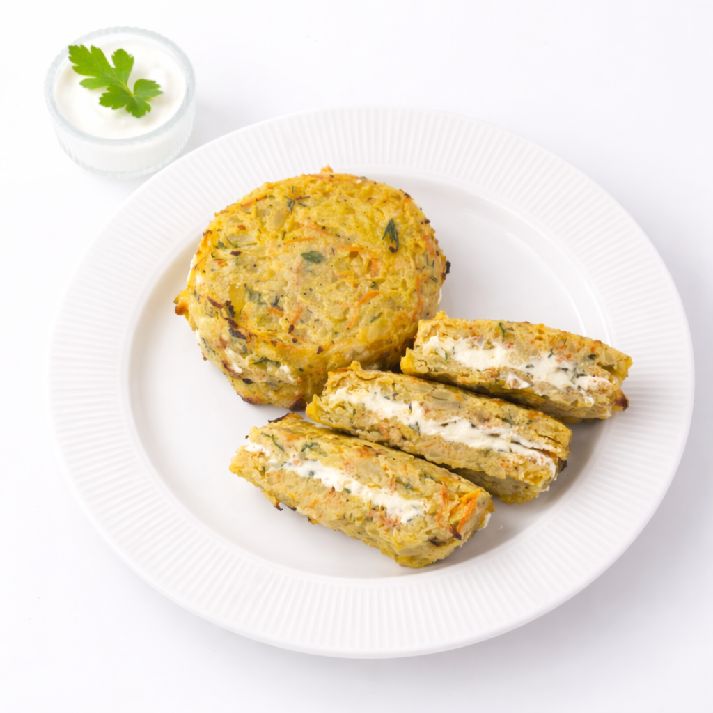 Картофи (65%), моркови, яйца, сметана заквасена, майонеза (масло слънчогледово рафинирано дезодорирано, вода питейна, яйчен жълтък на прах 1%, оцет, сол, сгъстител 1422, ароматизанти, консервант: сорбинова киселина, оцветители: каротини, подсладител: захарин), чесън, копър, сол, черен пипер