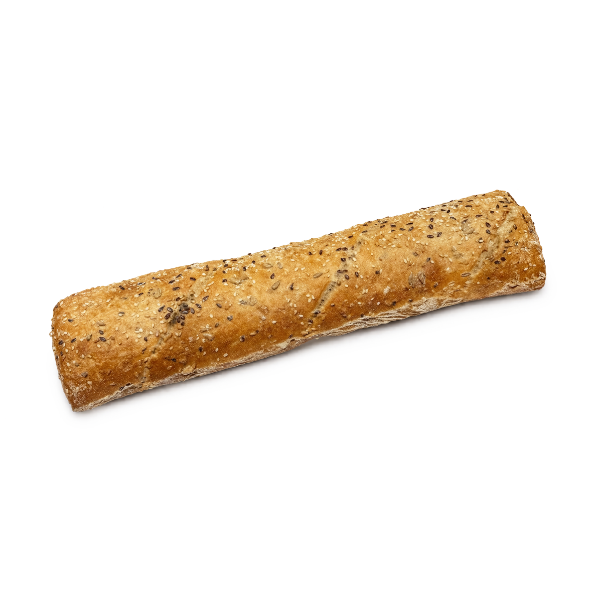ПШЕНИЧНО БРАШНО, питейна вода, семена и зърна в течна закваска с дрожди [пастьоризирани РЪЖЕНИ ДРОЖДИ (РЪЖЕНО БРАШНО, вода), зърна РЪЖ, слънчогледови семки, ленено семе (кафяво и жълто), зърна ПШЕНИЦА, зърна ЛИМЕЦ, сол йодирана], хлебопекарна смес (ПШЕНИЧНИ ДРОЖДИ сухи натурални, дрожди, брашно от твърди сортове ПШЕНИЦА, ензими), сол йодирана.