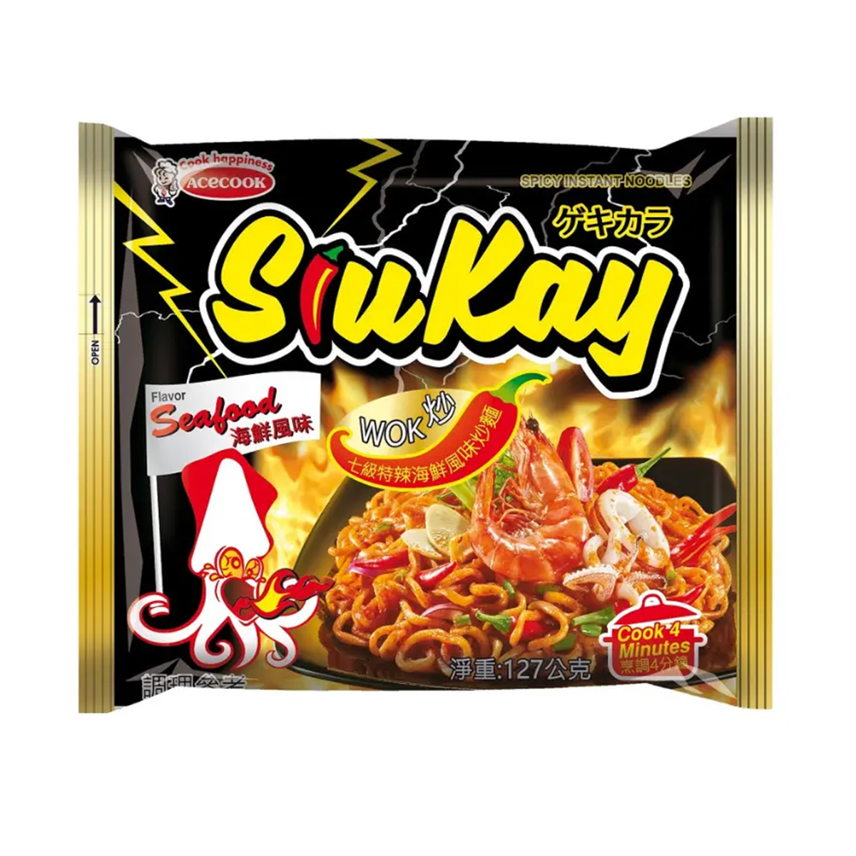 ПШЕНИЧНО брашно, палмово масло, сол, регулатори на киселинността: калиев карбонат, натриев карбонат, антиоксидант: токофероли, подправка с вкус на морски дарове (РАКООБРАЗНИ, РИБА), захар, екстракт от мая, скариди на прах (РАКООБРАЗНИ), екстракт от РИБА, подправка с вкус на калмар (МЕКОТЕЛИ), чили на прах, лук на прах, чесън на прах, подправки, подобрители на вкуса и аромат: мононатриев глутамат, динатриев 5′-рибонуклеотид, ароматизант, бульон на прах от морски дарове (РАКООБРАЗНИ, РИБА, МЕКОТЕЛИ), мононатриев глутамат, дехидратирано зеле, дехидратиран морков, дехидратиран зелен лук, дехидратирани люспи скариди (РАКООБРАЗНИ). Алергени: съдържа ПШЕНИЦА, ГЛУТЕН, РАКООБРАЗНИ (скариди), РИБА, МЕКОТЕЛИ. Може да съдържа следи от СОЯ, МЛЯКО, ЯЙЦА, ФЪСТЪЦИ, СУСАМ, ЦЕЛИНА, СИНАП.