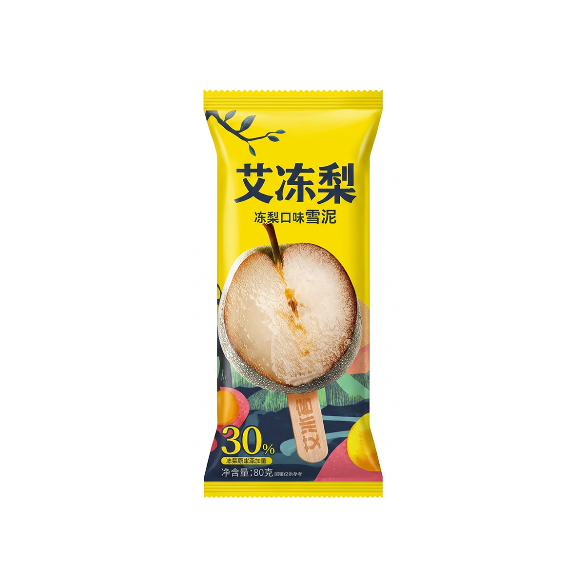 Вода, замразено пюре от круши (>30%), бяла захар, малтозен сироп, фруктозен сироп, ябълков сок, малтодекстрин; хранителни добавки: локуст бийн гума (E410), геланова гума (E418), ксантанова гума (E415), натриев цитрат (E331), DL-ябълчена киселина (E296), карамелен оцветител (E150); ароматизант.