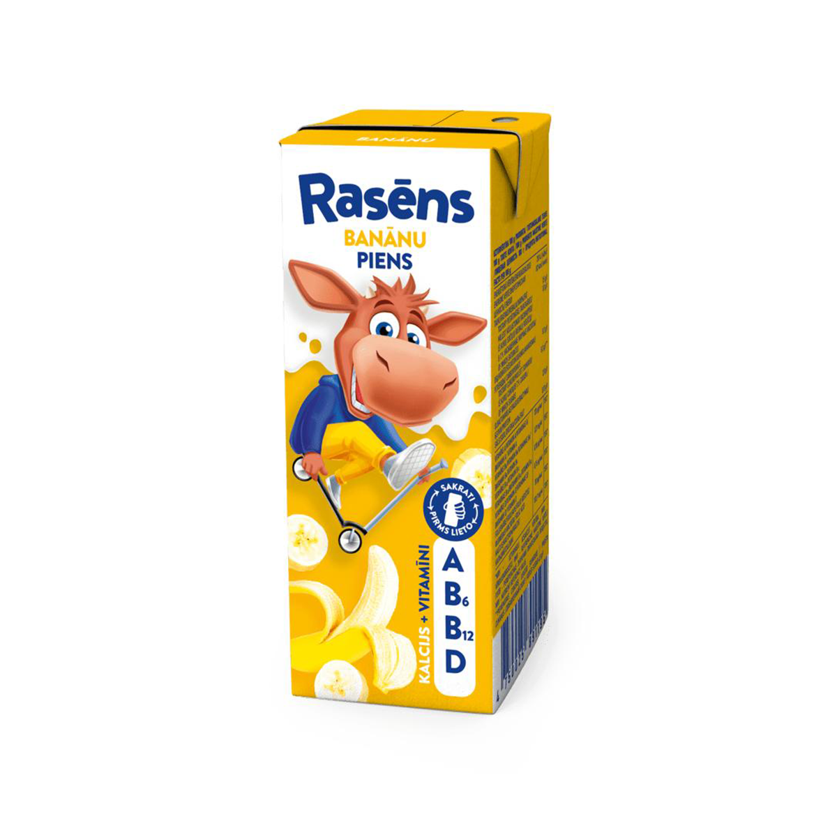 Краве МЛЯКО, захар, бананова подготовка 2% (инвертна захар, вода, натурален ароматизант – банан, банан 1%, сгъстител – карагенан), витамини A, B6, B12, D, фолиева киселина.